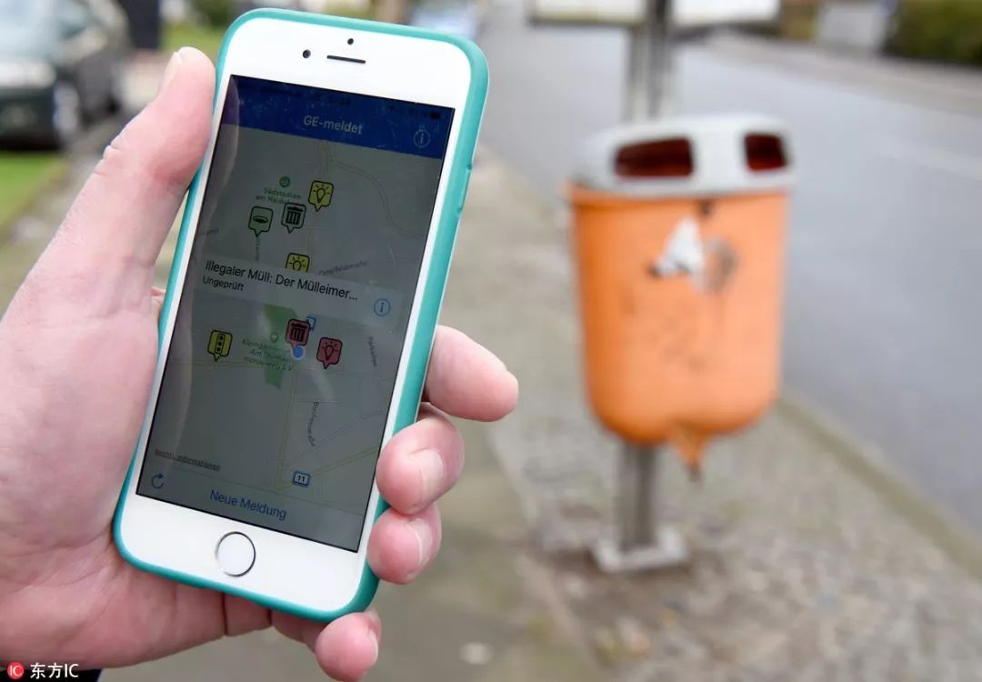 ▲德国柏林市民可以使用App寻找垃圾桶,如果垃圾桶有损坏,还能用App记录以便让相关部门修理维护。(东方IC)