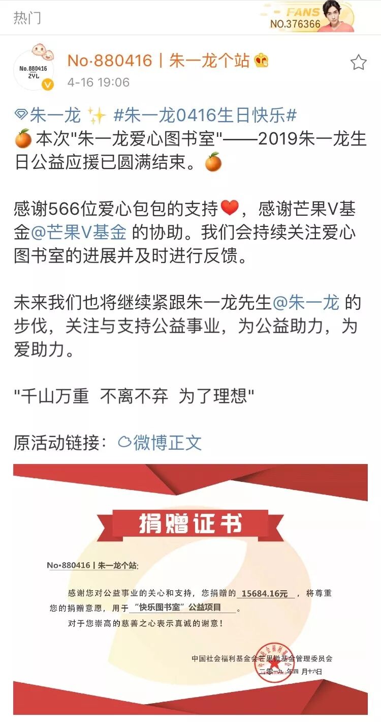 实际上,粉丝公益是伴随明星公益诞生而出现的。只是近两年,随着国内粉丝应援文化的逐渐成熟,随着公众对公益慈善理解度的加深,粉丝公益已然越俎代庖,成为了一支庞大、富有力量的公益群体。