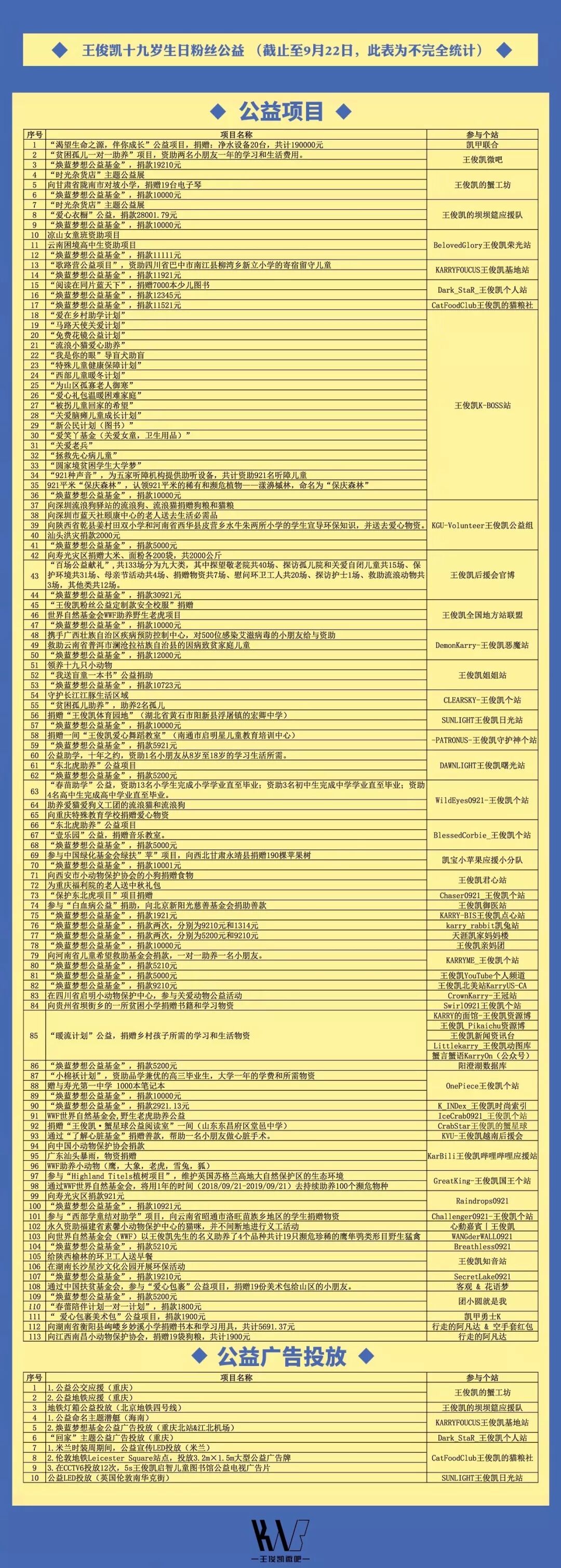 而粉丝们在公益上也不甘落后。以王俊凯粉丝为例,在2018年王俊凯19岁的生日公益应援中,粉丝们参与了关爱弱势人群、爱心动物助养和助力环境保护等多项公益活动,公益足迹覆盖国内外40多个地区,参与的公益项目达100余项。