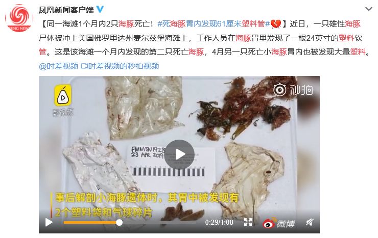 前几日,一则#死海豚胃内发现61厘米塑料管#的消息,冲上微博热搜,网友看到后纷纷表示心痛。